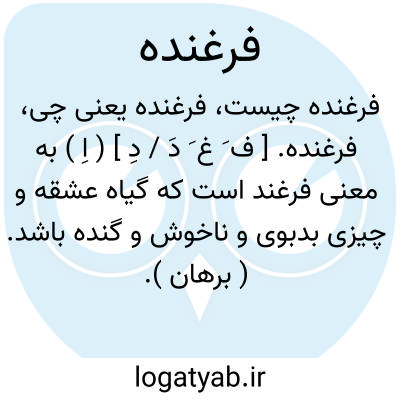 فرغنده. [ ف َ غ َ دَ / دِ ] ( اِ ) به معنی فرغند است که گیاه عشقه و چیزی بدبوی و ناخوش و گنده باشد. ( برهان ). رجوع به فرغند شود.