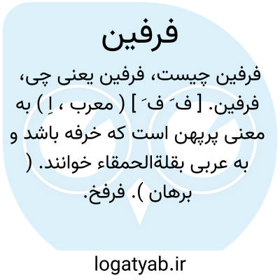 فرفین. [ ف َ ف َ ] ( معرب، اِ ) به معنی پرپهن است که خرفه باشد و به عربی بقلةالحمقاء خوانند. ( برهان ). فرفخ. فرفه. فرفهن. فرفیم. ( یادداشت به خط مؤلف ). و اندیقون نزد بعضی مسمی بدین اسم است. ( تحفه حکیم مؤمن ).