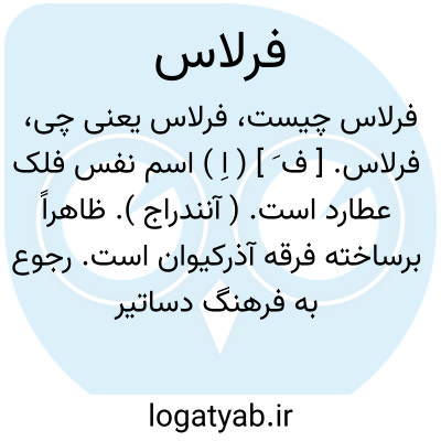 فرلاس. [ ف َ ] ( اِ ) اسم نفس فلک عطارد است. ( آنندراج ). ظاهراً برساخته فرقه آذرکیوان است. رجوع به فرهنگ دساتیر شود.