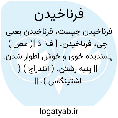 فرناخیدن. [ ف َ دَ ]( مص ) پسندیده خوی و خوش اطوار شدن. || پنبه رشتن. ( آنندراج ) ( اشتینگاس ). || خجالت کشیدن. سرخ شدن. ( اشتینگاس ). در مآخذ دیگر دیده نشد.