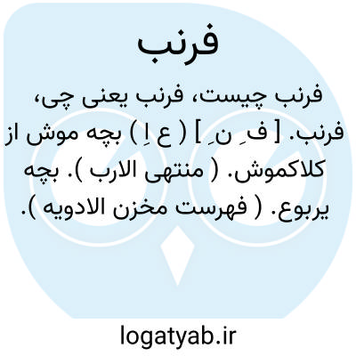 فرنب. [ ف ِ ن ِ ] ( ع اِ ) بچه موش از کلاکموش. ( منتهی الارب ). بچه یربوع. ( فهرست مخزن الادویه ). ام راشد. فویسقة. ( یادداشت به خط مؤلف ). موش یا بچه ٔموش از یربوع. ( اقرب الموارد ).