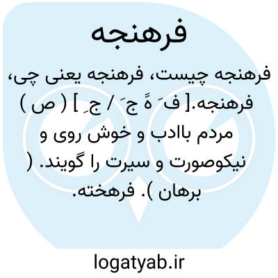 فرهنجه.[ ف َ هََ ج َ / ج ِ ] ( ص ) مردم باادب و خوش روی و نیکوصورت و سیرت را گویند. ( برهان ). فرهخته. فرهیخته.