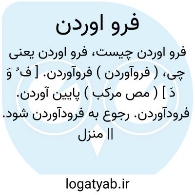 ( فرو آوردن ) ( ~. وَ یا وُ دَ ) (مص م. ) ۱ - پایین آوردن. ۲ - به منزل کسی وارد کردن.
