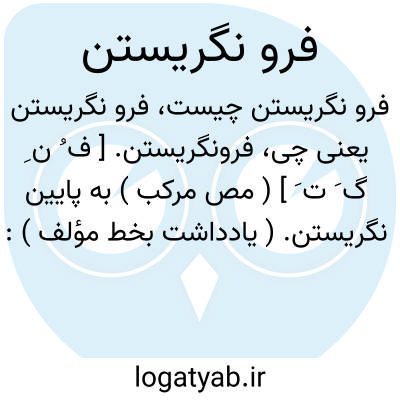 فرونگریستن. [ ف ُ ن ِ گ َ ت َ ] ( مص مرکب ) به پایین نگریستن. ( یادداشت بخط مؤلف ): جمله مخلوقات به نظاره او بیرون آمده بودند سلیمان فرونگریست، مردی را دید که بیل میزد. ( قصص الانبیاء ). آنگه بسر تنور آمد و فرونگرید. ( تفسیر ابوالفتوح ). || ملاحظه و مطالعه کردن. ( یادداشت بخط مؤلف ): سوادی کرده ام امروز بیاض کنند تا خداوند فرونگرد. ( تاریخ بیهقی ). من که بوالفضلم کتاب بسیار فرونگریسته ام خاصه اخبار. ( تاریخ بیهقی ). منشور و فرمانها بخواسته و فرونگریسته و ترجمه های آن راست کرده. ( تاریخ بیهقی ). رجوع به فرونگریستن شود.