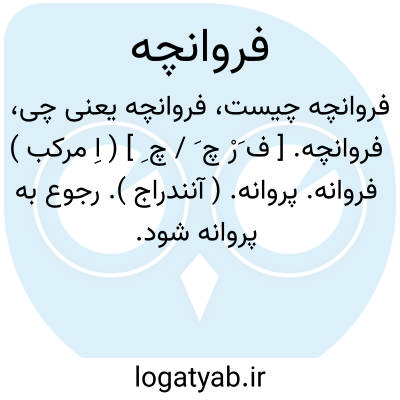فروانچه. [ ف َرْ چ َ / چ ِ ] ( اِ مرکب ) فروانه. پروانه. ( آنندراج ). رجوع به پروانه شود.