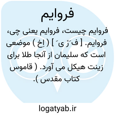 لغت نامه دهخدا فروایم. [ ف َرْ ی َ ] ( اِخ ) موضعی است که سلیمان از آنجا طلا برای زینت هیکل می آورد. ( قاموس کتاب مقدس ).