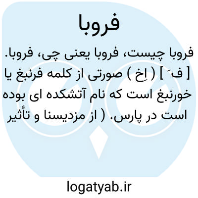 فروبا. [ ف َ ] ( اِخ ) صورتی از کلمه فرنبغ یا خورنبغ است که نام آتشکده ای بوده است در پارس. ( از مزدیسنا و تأثیر آن در ادبیات پارسی تألیف معین ص 228 ). رجوع به فرنبغ و آذرفرنبغ شود.