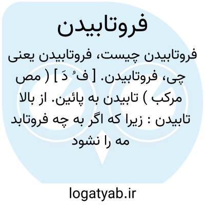 لغت نامه دهخدا فروتابیدن. [ ف ُ دَ ] ( مص مرکب ) تابیدن به پائین. از بالا تابیدن: زیرا که اگر به چه فروتابدمه را نشود جلالت ماهی.ناصرخسرو.رجوع به تابیدن شود.