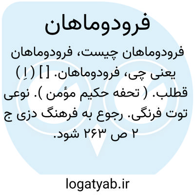 فرودوماهان. [ ] ( اِ ) قطلب. ( تحفه حکیم مؤمن ). نوعی توت فرنگی. رجوع به فرهنگ دزی ج 2 ص 263 شود.