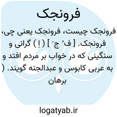 فرونجک. [ ف ُ ج َ ] ( اِ ) گرانی و سنگینی که در خواب بر مردم افتد و به عربی کابوس و عبدالجنه گویند. ( برهان ). فرنجک. فرهانج. ( حاشیه برهان چ معین ). || اطراف دهان و پیرامونش آن را نیز گفته اند از جانب بیرون. ( برهان ). فرنج. فرهانج. ( حاشیه برهان چ معین ).