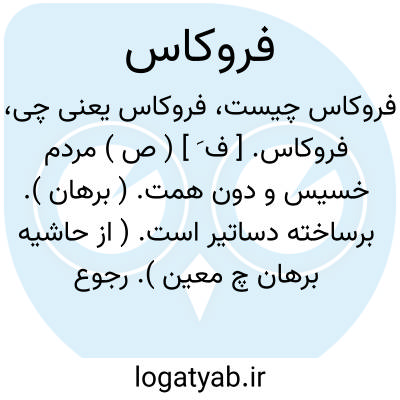 فروکاس. [ ف َ ] ( ص ) مردم خسیس و دون همت. ( برهان ). برساخته دساتیر است. ( از حاشیه برهان چ معین ). رجوع به فرهنگ دساتیر ص 258 شود.