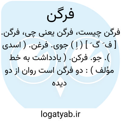 فرگن. [ ف َ گ َ ] ( اِ ) جوی. فرغن. ( اسدی ). جو. فرکن. ( یادداشت به خط مؤلف ):