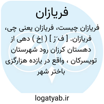 فریازان. [ ف َرْ ] ( اِخ ) دهی از دهستان کرزان رود شهرستان تویسرکان، واقع در یازده هزارگزی باختر شهر تویسرکان و یک هزارگزی جنوب راه شوسه تویسرکان به کرمانشاه. ناحیه ای است واقع در جلگه، سردسیر و دارای 1081 تن سکنه. از کرزان رود مشروب میشود. محصولاتش غلات، حبوبات،قلمستان زیاد، لبنیات، انگور و صیفی است. اهالی به کشاورزی و گله داری گذران میکنند. دبستان و هشت باب دکان و مسجد دارد. ( از فرهنگ جغرافیایی ایران ج 5 ).