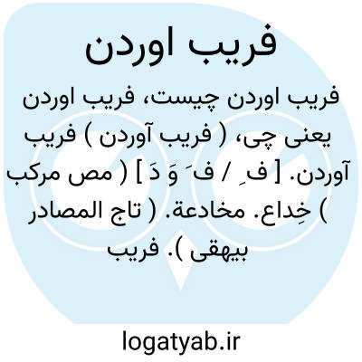 لغت نامه دهخدا ( فریب آوردن ) فریب آوردن. [ ف ِ / ف َ وَ دَ ] ( مص مرکب ) خِداع. مخادعة. ( تاج المصادر بیهقی ). فریب دادن.