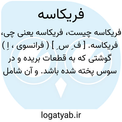 فریکاسه. [ ف ِ س ِ ] ( فرانسوی، اِ ) گوشتی که به قطعات بریده و در سوس پخته شده باشد. و آن شامل انواع مختلف است. ( فرهنگ فارسی معین ).