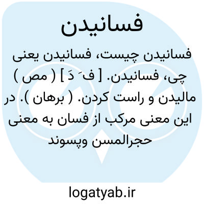 فسانیدن. [ ف َ دَ ] ( مص ) مالیدن و راست کردن. ( برهان ). در این معنی مرکب از فسان به معنی حجرالمسن وپسوند مصدری است. ( از حاشیه برهان چ معین ). || رام ساختن. ( برهان ). در این معنی مصحف فساییدن است. ( از حاشیه برهان چ معین ). || افسانه گفتن. ( برهان ). در این معنی مرکب افسان به معنی افسانه و پسوند مصدری است. ( از حاشیه برهان چ معین ). || افسون گری کردن. ( برهان ). در این معنی نیز مصحف افساییدن است. ( از حاشیه برهان چ معین ).