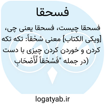 [ویکی الکتاب] معنی سُحْقاً: تکه تکه کردن و خوردن کردن چیزی با دست (در جمله "فَسُحْقاً لِّأَصْحَابِ ﭐلسَّعِیرِ "حکم نفرینی برای اصحاب جهنم دارد)