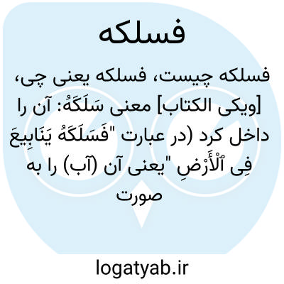 [ویکی الکتاب] معنی سَلَکَهُ: آن را داخل کرد (در عبارت "فَسَلَکَهُ یَنَابِیعَ فِی ﭐلْأَرْضِ "یعنی آن (آب) را به صورت چشمه هایی در زمین درآورد)