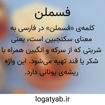 کلمه‌ی «فسملن» در فارسی به معنای سکنجبین است، یعنی شربتی که از سرکه و انگبین همراه با شکر یا قند تهیه می‌شود. این واژه ریشه‌ی یونانی دارد و به‌صورت تاریخی وارد زبان فارسی شده است. فسملن معمولاً به عنوان یک نوشیدنی خنک‌کننده و خوش‌طعم در فصل تابستان یا برای رفع عطش و همچنین به عنوان طعم‌دهنده در برخی خوراکی‌ها و سالادها به کار می‌رود. ترکیب سرکه و انگبین باعث می‌شود فسملن هم طعم شیرین داشته باشد و هم خاصیت ضدعفونی‌کننده یا گوارشی. در متون طب سنتی و آشپزی ایرانی، فسملن برای تقویت معده و رفع گرمازدگی توصیه شده است. این واژه بیشتر در منابع قدیمی و متون طب سنتی دیده می‌شود و در مکالمات روزمره کمتر استفاده می‌شود.
