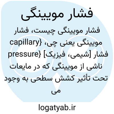 فرهنگستان زبان و ادب {capillary pressure} [شیمی، فیزیک] فشار ناشی از مویینگی که در مایعات تحت تأثیر کشش سطحی به وجود می آید