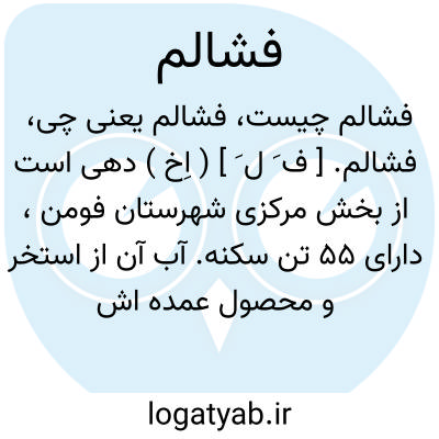فشالم. [ ف َ ل َ ] ( اِخ ) دهی است از بخش مرکزی شهرستان فومن، دارای 55 تن سکنه. آب آن از استخر و محصول عمده اش برنج، چای، توتون و ابریشم است. ( از فرهنگ جغرافیایی ایران ج 2 ).