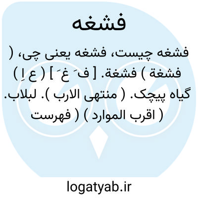 ( فشغة ) فشغة. [ ف َ غ َ ] ( ع اِ ) گیاه پیچک. ( منتهی الارب ). لبلاب. ( اقرب الموارد ) ( فهرست مخزن الادویه ). || پنبه اندرون نی. آنچه از شکم گیاه صوصلاء پردو پراکنده گردد. ( منتهی الارب ) ( از اقرب الموارد ).