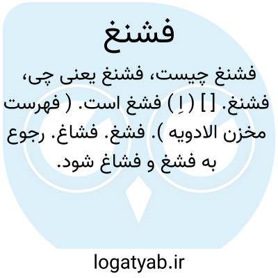 فشنغ. [ ] ( اِ ) فشغ است. ( فهرست مخزن الادویه ). فشغ. فشاغ. رجوع به فشغ و فشاغ شود.