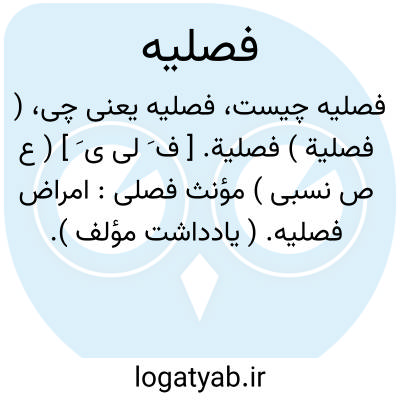 ( فصلیة ) فصلیة. [ ف َ لی ی َ ] ( ع ص نسبی ) مؤنث فصلی: امراض فصلیه. ( یادداشت مؤلف ).