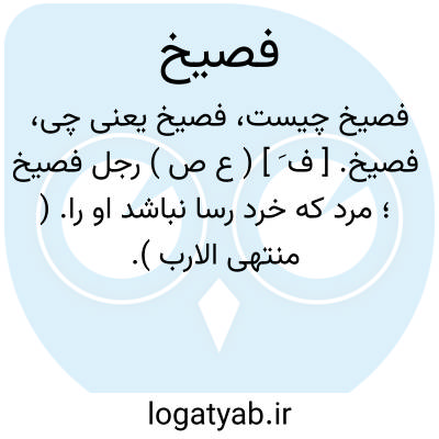 فصیخ. [ ف َ ] ( ع ص ) رجل فصیخ؛ مرد که خرد رسا نباشد او را. ( منتهی الارب ).