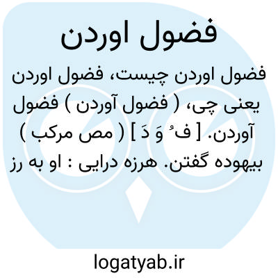 ( فضول آوردن ) فضول آوردن. [ ف ُ وَ دَ ] ( مص مرکب ) بیهوده گفتن. هرزه درایی: