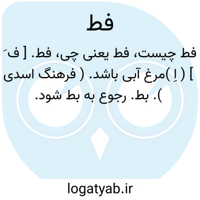 فط. [ ف َ ] ( اِ )مرغ آبی باشد. ( فرهنگ اسدی ). بط. رجوع به بط شود.