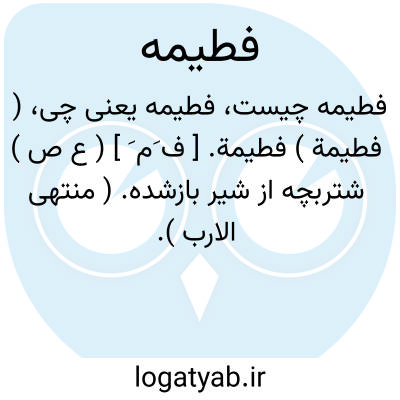 ( فطیمة ) فطیمة. [ ف َم َ ] ( ع ص ) شتربچه از شیر بازشده. ( منتهی الارب ).