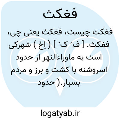 لغت نامه دهخدا فغکث. [ ف َ ک َ ] ( اِخ ) شهرکی است به ماوراءالنهر از حدود اسروشنه با کشت و برز و مردم بسیار.( حدود العالم ). معنی این ترکیب گویا بتخانه و خود لفظ صورتی از ترکیب «فغکده » است. رجوع به فغکد شود.