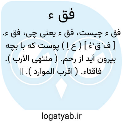 فق ء. [ ف َق ْءْ ] ( ع اِ ) پوست که با بچه بیرون آید از رحم. ( منتهی الارب ). فاقئاء. ( اقرب الموارد ). || پوست پاره تنک که بر بینی بچه باشد و دور نکردنش در حال موجب هلاکی بچه گردد. ( منتهی الارب ). فاقئاء. ( اقرب الموارد ). || گوسنگ. ( منتهی الارب ). کندگی در سنگ. ( از اقرب الموارد ). || گود زمین درشت که در آن آب گرد آید. || ( مص ) فرونشاندن خشم کسی را. || شکستن. ( منتهی الارب ) ( ازاقرب الموارد ). || برکندن چشم و آبله و مانند آن را. ( منتهی الارب ). شکافتن دمل و مانند آن راتا آنچه در آن است بیرون آید. ( از اقرب الموارد ).