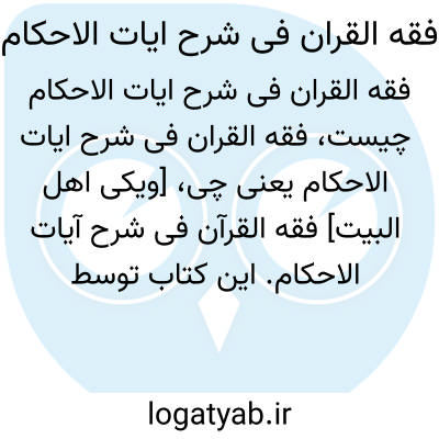 [ویکی اهل البیت] فقه القرآن فى شرح آیات الاحکام. این کتاب توسط فقیه مفسر، محدث ادیب، قطب الدین سعید بن هبة الله راوندی، از علمای بزرگ شیعه در قرن ششم هجری نگاشته شده است.
