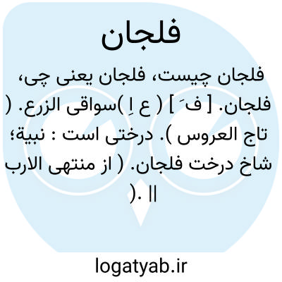 لغت نامه دهخدا فلجان. [ ف َ ] ( ع اِ )سواقی الزرع. ( تاج العروس ). درختی است: نبیة؛ شاخ درخت فلجان. ( از منتهی الارب ). || پوست گورخر. ( یادداشت مؤلف از ابن الندیم ). و الروم یکتب فی الحریر الابیض و الرق و غیره، و فی الطومار المصری و فی الفلجان، و هو جلود الحمیر الوحشیة. ( ابن الندیم ).