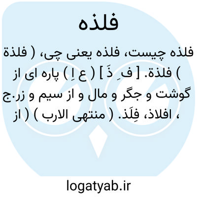 ( فلذة ) فلذة. [ ف ِ ذَ ] ( ع اِ ) پاره ای از گوشت و جگر و مال و از سیم و زر.ج، افلاذ، فِلَذ. ( منتهی الارب ) ( از اقرب الموارد ).