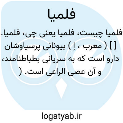 فلمیا. [ ] ( معرب، اِ ) بیونانی پرسیاوشان دارو است که به سریانی بطباطنامند، و آن عصی الراعی است. ( فهرست مخزن الادویه ).