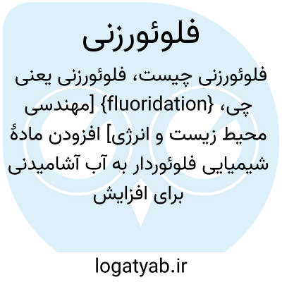 فرهنگستان زبان و ادب {fluoridation} [مهندسی محیط زیست و انرژی] افزودن مادۀ شیمیایی فلوئوردار به آب آشامیدنی برای افزایش غلظت یون فلوراید تا حد مجاز