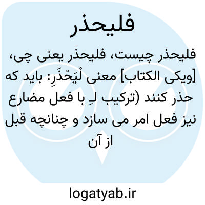 [ویکی الکتاب] معنی لْیَحْذَرِ: باید که حذر کنند (ترکیب لـِ با فعل مضارع نیز فعل امر می سازد و چنانچه قبل از آن حروف ربط "وَ"،"ثُمَّ" یا "فـَ" بیاید، این لام ساکن می شود مثل "فَلْیَحْذَرِ " حرف را در این کلمه نیز به دلیل تقارن با حرف ساکن یا تشدید دار کلمه بعد حرکت گرفته است)