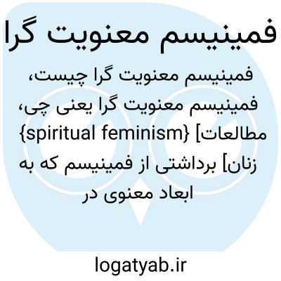 {spiritual feminism} [مطالعات زنان] برداشتی از فمینیسم که به ابعاد معنوی در خوشبختی زنان به اندازۀ حقوق مادی آنها یا حتی بیش از آن، اهمیت می دهد