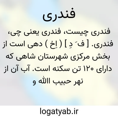 فندری. [ ف َ دِ ] ( اِخ ) دهی است از بخش مرکزی شهرستان شاهی که دارای 120 تن سکنه است. آب آن از نهر حبیب اﷲ و رودخانه تالار و محصول عمده اش غله، برنج، صیفی ومختصر توتون است. ( از فرهنگ جغرافیایی ایران ج 3 ).