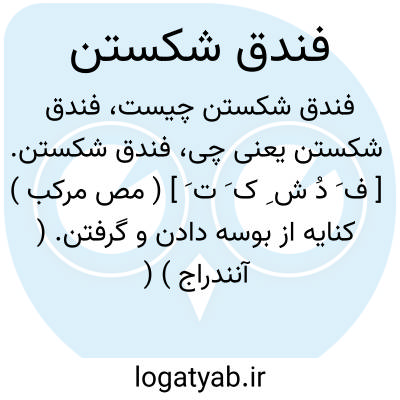 فندق شکستن. [ ف َ دُ ش ِ ک َ ت َ ] ( مص مرکب ) کنایه از بوسه دادن و گرفتن. ( آنندراج ) ( انجمن آرا ) ( غیاث ) ( بهارعجم ) ( برهان ). شاهدی برای این معنی به نظر نرسید.