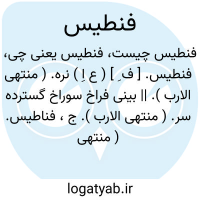 لغت نامه دهخدا فنطیس. [ ف ِ ] ( ع اِ ) نره. ( منتهی الارب ). || بینی فراخ سوراخ گسترده سر. ( منتهی الارب ). ج، فناطیس. ( منتهی الارب ) ( از اقرب الموارد ). || ( ص ) مرد ناکس از جانب ولادت. آنکه از اصل پست باشد. || مرد پهن بینی. ( منتهی الارب ) ( از اقرب الموارد ).