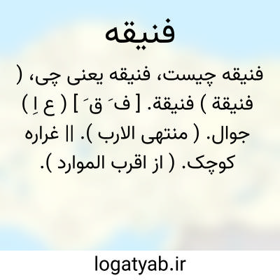 لغت نامه دهخدا ( فنیقة ) فنیقة. [ ف َ ق َ ] ( ع اِ ) جوال. ( منتهی الارب ). || غراره کوچک. ( از اقرب الموارد ). غرارة. ج، فنائق. ( منتهی الارب ).