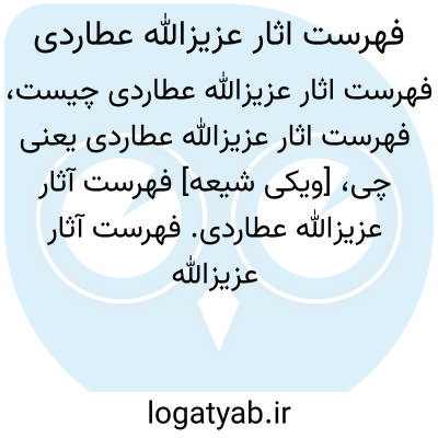 [ویکی شیعه] فهرست آثار عزیزالله عطاردی. فهرست آثار عزیزالله عطاردی مجموعه تألیفات و رساله های علمی عزیزالله عطاردی (درگذشت: ۱۳۹۳ش) از عالمان و نویسندگان شیعه در ایران است. آثار او در سه عرصه تألیف، ترجمه و تصحیح به بیش از صد جلد می رسد که در موضوعات تاریخ، جغرافیا، حدیث، لغت و فهرست نگاری قلم زده و مشهورترین آن، مُسنَدنگاری اهل بیت در موضوع حدیث است. کتاب های او در مسندنویسی، آثار به زبان فارسی و عربی و ترجمه و تصحیح به این شرح است: