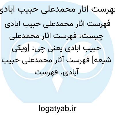 [ویکی شیعه] فهرست آثار محمدعلی حبیب آبادی. فهرست آثار محمدعلی معلم حبیب آبادی مجموعه تألیفات معلم حبیب آبادی از عالمان شیعه قرن چهردهم قمری در اصفهان است. او از سال ۱۳۲۷ق شروع به تألیف کتاب نمود و بیش از سی کتاب بزرگ و کوچک از خود به یادگار گذاشت. مشهورترین اثر حبیب آبادی کتاب مکارم الآثار در احوال رجال دوره قاجار است. از دیگر آثار معلم می توان به این کتاب ها اشاره کرد: