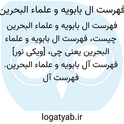 [ویکی نور] فهرست آل بابویه و علماء البحرین. فهرست آل بابویه و علماء البحرین، اثر شیخ سلیمان بن عبدالله ماحوزی بحرانی (ماحوز 1075-1121ق) است که در آن، سه رساله گرد آمده و در مجموع شرح حال 68 نفر از مشایخ آل بابویه و اندیشوران بحرین ذکر شده است.