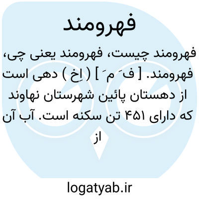فهرومند. [ ف َ م َ ] ( اِخ ) دهی است از دهستان پائین شهرستان نهاوند که دارای 451 تن سکنه است. آب آن از رودخانه گاماسیاب و محصول عمده اش غله، توتون، حبوب و لبنیات است. ( از فرهنگ جغرافیایی ایران ج 5 ).