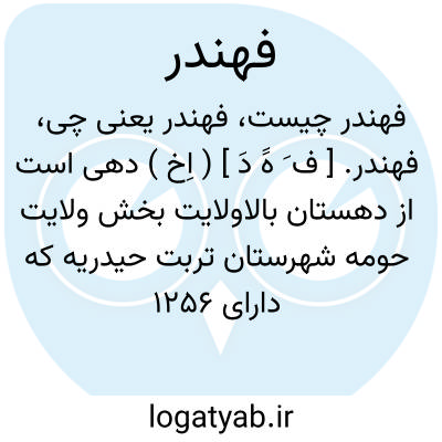 فهندر. [ ف َ هََ دَ ] ( اِخ ) دهی است از بخش رشخوار شهرستان تربت حیدریه که دارای 22 تن سکنه است. آب آن از قنات و محصول عمده اش غله و بنشن است. ( از فرهنگ جغرافیایی ایران ج 9 ).